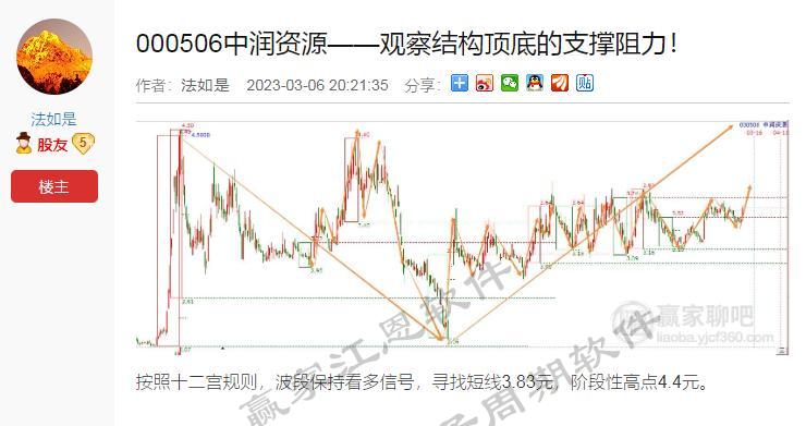 中潤資源按照贏家十二宮結構工具信號,預測短線3.83元,階段性波段高點4.4元。