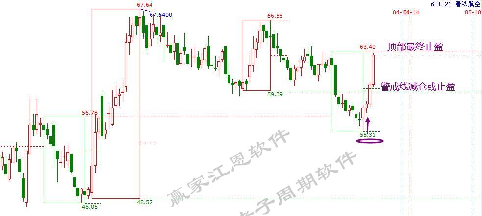 2.價格(支撐阻力)。按照結構買賣點規則,底部買點屬于保守型信號,計劃第一目標看多警戒線位置,(減倉或止盈信號),最終止盈位結構頂部63.40元阻力位。