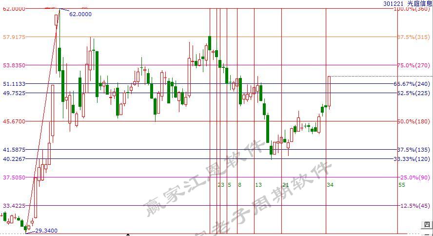 江恩波段百分比三分位實戰技巧分享,回調三分位時是關注,大概率止跌回穩,操作策略建倉或加倉;上攻三分位時是阻力,大概率反轉下跌,操作策略減倉或止盈。