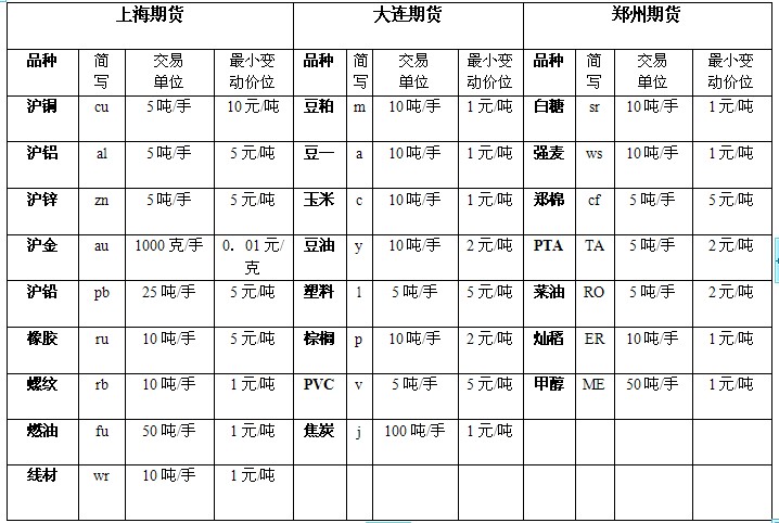 國內商品期貨分為:上海期貨、大連期貨、鄭州期貨