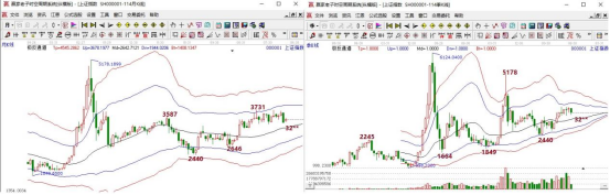 思路5:用歷史極限關(guān)鍵位95至6124、1849至5178做圖。前者0.5倍位置3109,后者0.618位置3121,空間點位相似。