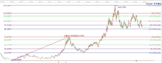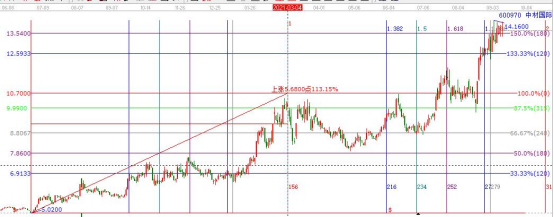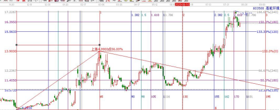 圖中選定股票的特定波動空間后,會對未來股價的拐點產生共鳴。這個特定的波動空間就是該股本輪空間波動的原始循環波動率(在美國的詞典中波動還有一層解釋是感應、共鳴)。