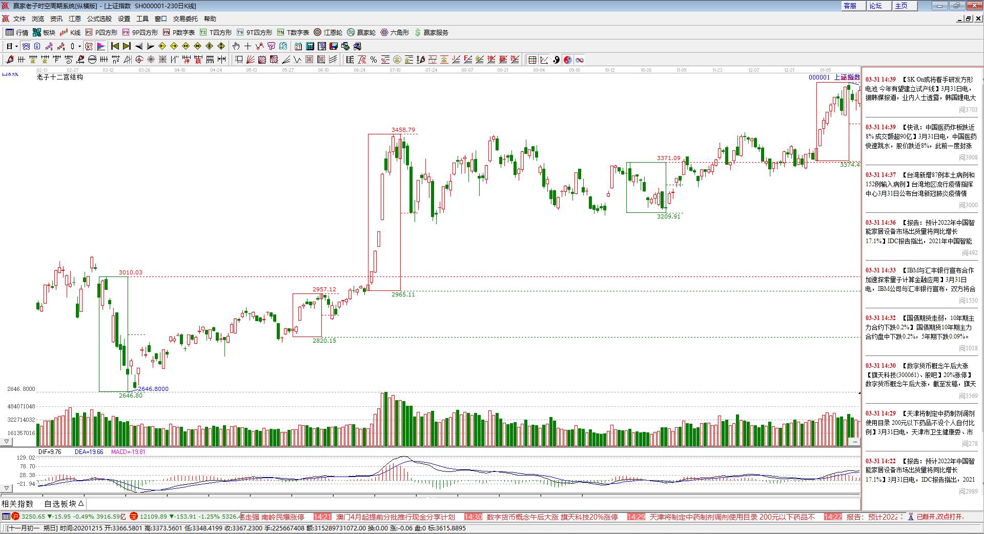 如上圖所示,凡是《贏家老子時空周期系統》軟件界面展示的綠色框,我們均稱為“下跌結構”